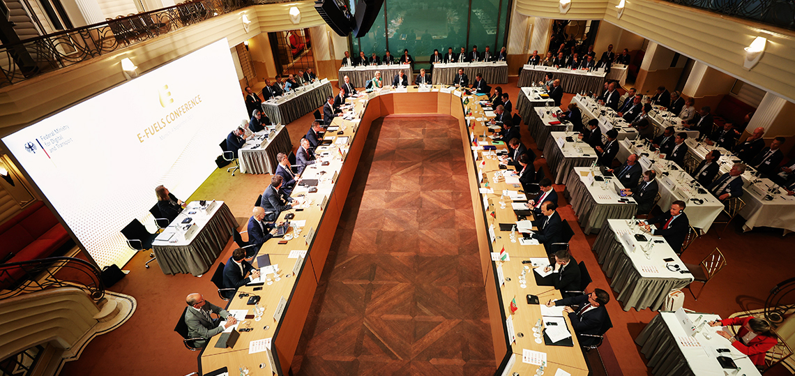 EU ministers, selected international ministers and numerous international experts from the business community, associations and the scientific community took part in the industry meeting in the ballroom of the Hotel Bayerischer Hof in Munich. The purpose of the meeting was to create a common knowledge basis through the international networking of politics, business and science and create synergies for accelerating the market ramp-up of e-fuels.